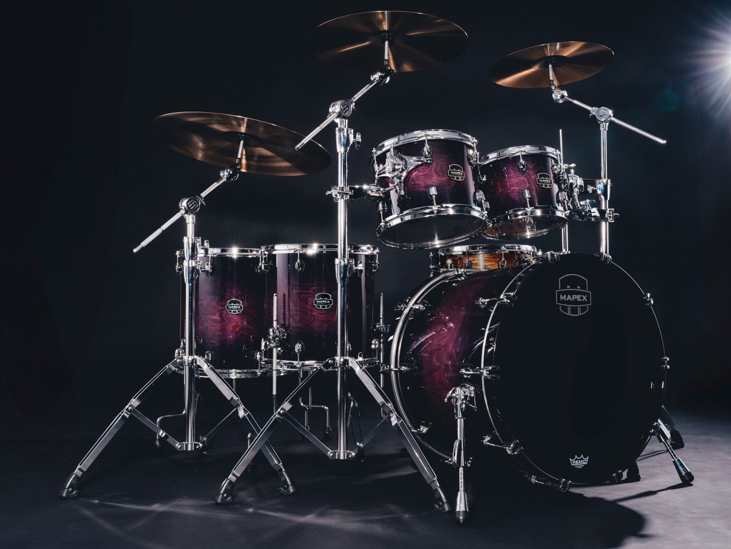 Borrowed from the Design Lab Series, the Saturn floor toms have the new “lift” bracket design. The metal components of the floor tom brackets are now entirely on the outside of the shell, isolated by the special rubber lift gasket. This releases all pressure from the shell, alleviating vibration loss.